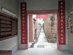 The only surviving portion of the original green-brick boundary wall at the main entrance of the Wai gives visitors an insight into the walled village's historical outlook.[1] Tin Hau, Kwan Tai and a Qing official are worshipped in the village shrine.[7]