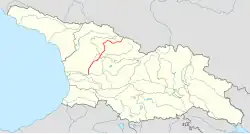 The Tskhenistsqali (Georgian: ცხენისწყალი, Cxenisċqali [t̪͡s̪ʰχe̞n̪is̪t͡s'χ'äli], also: Tskhenistskali)[1] is a river in northern Georgia. Its source is in the main range of the Caucasus Mountains, in the easternmost part of the Lentekhi Municipality, lower Svaneti. A tributary of the river Rioni, it is 176 km (109 mi) long, and has a drainage basin of 2,120 km2 (820 sq mi).[2] It flows through the small towns Lentekhi and Tsageri and joins the Rioni near the town of Samtredia. The main tributaries of Tskhenistskali are: Zsekho, Kheleldula, Janolula ( from the right ), Kobishuri, Leuseri, Khopuri (from the left).