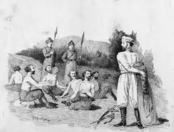 In the meantime, Tsotne Dadiani arrived with his army to the appointed rendezvous at Rkinis-Juari between Samtskhe and Ghado. Upon hearing what had happened, he dismissed his army and, in the company of two servants, headed to Shirakavan. When he saw the prisoners, Dadiani took off his clothes and joined them. When interrogated, he maintained that the Georgians had no design to revolt and demanded to be executed if that was the punishment of others. Impressed, the noyan took Dadiani's self-sacrifice move as a testimony to the Georgians' innocence and set them free.[7][9]