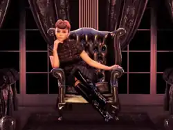 Shot from the music video of "Ballerina", portraying Amuro sitting down on an armchair. Being a collaboration with Gucci and Vogue Japan, the idea was to explore the CGI production.
