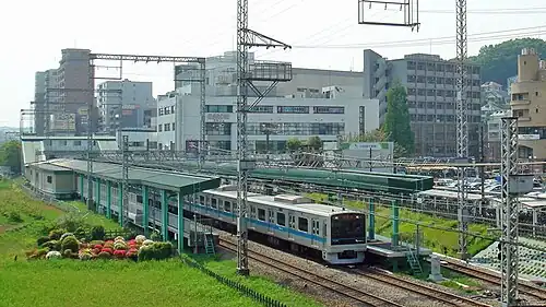 ![]() Overview of Tsurukawa Stationwith a Shinjuku-bound train departing, May 2010 | ||||||||||||||||||||