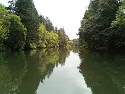 The Tualatin River is a tributary of the Willamette River in Oregon in the United States. The river is about 83 miles (134 km) long, and it drains a fertile farming region called the Tualatin Valley southwest and west of Portland at the northwest corner of the Willamette Valley. There are approximately 500,000 people residing on 15 percent of the land in the river's watershed.[6]