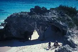 Natural Arches Beach is located at the southern tip of the peninsula, where it joins with the mainland. This is Bermuda's most famous beach, and was noted for its natural rock formations and caves until they were largely destroyed by Hurricane Fabian in 2003.