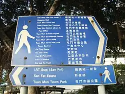 Tuen Mun (Chinese: 屯門) is an MTR Light Rail stop which belongs to zone 2. There are two platforms in Tuen Mun stop. This Light Rail stop is located above Pui To Road and Ho Pong Street and north of Tuen Mun Park. It provides service for nearby residents and is an interchange station for the Tuen Ma line, formerly known as the West Rail line.[1]