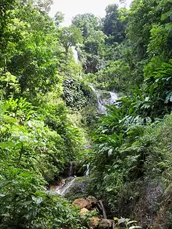 The Tufton Hall Waterfall is located in St. Mark's parish, just outside Victoria, Grenada. It is the tallest waterfall in Grenada, with the approximate height of 25 m.[1] The only way to visit the waterfall is to hike for approximately 3 hours (each way) through technical and somewhat strenuous terrain. Guides from Victoria are available, usually carrying rope and cutlass.