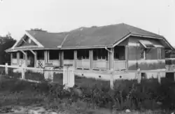 Fence posts, consistent with the character and age of the building, survive marking the entrance to the site and a recent chain link fence borders that boundary of the site. A palm tree sits within the grounds of the building adjacent to the principal entrance and several other large trees surround the other three sides of the building.[1]