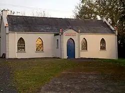 Tullymacann Orange Hall, despite its name, is located in the neighbouring townland of Drumnaleg.[4] The hall was originally built as Glebe National School, dating as far back as 1860.[5] It was attacked in February 1992 with minor damage inflicted.[6] A defibrillator was attached to the hall by Drumnaleg Community Association in March 2023.[7]