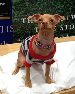 Tuna is a Chihuahua–Dachshund crossbreed dog, best known as an internet celebrity, and an internet meme. He was abandoned by his original owner near San Diego, and was adopted at a farmer's market in Los Angeles by Courtney Dasher. After she created an Instagram page for him, a photo of him was featured on the company's website resulting in an increase in followers. Dasher has used Tuna's celebrity status to raise money for animal rescue groups and to promote animal welfare generally. A book of photographs of Tuna was released in 2015, entitled Tuna Melts My Heart: The Underdog With The Overbite.