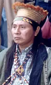 They gained international visibility in a 14-year-long struggle to prevent oil drilling on their land, which secured the withdrawal of Royal Dutch Shell and Occidental Petroleum (Oxy), and continues as Ecopetrol and Repsol YPF seek to drill on their land.[2] Their representative to the outside world in this struggle, Berito Kuwaru'wa, won the Goldman Environmental Prize in 1998. The conflict came to a head as Oxy prepared to drill at the Gibraltar 1 test site. The U'wa, who had previously threatened to commit mass suicide if the oil extraction project went forward, constructed a small village on the site of the drillsite. They also set up numerous roadblocks and a coordinated (together with neighboring campesinos and the Guahibo) a regional social strike that paralyzed the surrounding area. Although the Colombian military dislodged the protesters from the site, no commercially viable deposits were found. The U'wa were then in a new dispute with Ecopetrol, which was seeking to prospect for oil on their lands,[3] after legal battles and non-violent protests, Ecopetrol withdrew.[4]