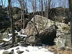 Loyalist "Tory Den" on the Tunxis Yellow Dot Trail in the Burlington Section
