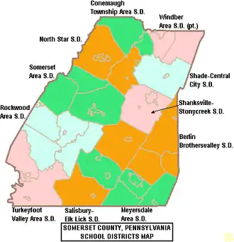 The Turkeyfoot Valley Area School District is a small, rural school district located in the Southwestern portion of Somerset County, Pennsylvania. The school district serves the municipalities of Addison, Addison Township, Confluence, Lower Turkeyfoot Township and Ursina. It encompasses approximately 102 square miles. According to 2000 federal census data, it serves a resident population of 3,093. As of 2009, the per capita income was $14,042 while the median family income was $31,825.[1]