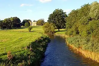 The house is in the centre of the park, on a slight rise above the river; there is a commanding view to the south-west across the park towards the river and beyond. The house is in Neoclassical style. The south-west front has seven bays, with Corinthian columns at the end bays; the north-east front has a tetrastyle Doric porch.[1][2]