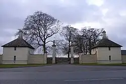 In 2000, the new owner Wafic Saïd replaced Phillimore's house with a grander Anglo-Palladian design on the same site designed by Sir William Whitfield (1920–2019) of Whitfield Lockwood Architects. The house has a two-storey entrance front and a three-storey garden front. In the centre of the house is a three-storey circular staircase hall, reminiscent of that at New Wardour Castle.[6] In 2004 the Georgian Group gave the completed house its award for the "best new building in the Classical tradition",[7] although doctrinaire modernist architectural critics have been sceptical.[8] Outbuildings, lodges and a monumental obelisk to commemorate the Millennium have been completed for Wafic Saïd, all to the design of Whitfield Lockwood. As part of extensive landscape works the patte d'oie has been reinstated and a wide double avenue from the entrance to the house and terminating at the obelisk established.