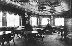 The two lower floors of the building were also altered. In October 1881, the pastry-baker and wine merchant D. B. Schucani (from Ftan in Graubünden) moved his café from the ground floor of nearby Vimmelskaftet 43 to these new mezzanine with one room with windows to Vimmelskaftet where newspapers were displayed and another with windows to Badstuestræde.[19] His countrymen and olleagues Mini and à Porta from Kongens Nytorv provided a deposit for his investment. The café was given the name Café Bernina after the [[ Bernina Range]] in South-Eastern Switzerland.[13]