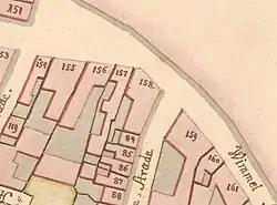 No. 157 was home to 15 residents in two households at the 1787 census. Niels Ahrensberg, a collector at Tal-Lotteriet, resided in the building with his wife Cathrine Lise Nickelman, their five children (aged two to 16), a female cook and a maid.[6] Ludevig Wittrog, a supercargo in the service of the Danish Asiatic Company, resided in the building with his wife Henriette Magdalena Rossow, their three children (aged 11 to 21) and one maid.[7] No. 156 belonged to wime merchant Jacob Drewsen at the 1787 census. He resided in the building with his wife Magdalena Friderica Zumpe, their son Martin Drewsen, the wife's sister Elisabet Margretha Zumpe, his nephew Jørgen Christopher Drewsen (assessor at the Supreme Court), an employee in his wine business, three apprentices, a coachman, a caretaker, one male servant, two maids and a female cook.[8] No. 84 belonged to fourier Johan Heinrich Cramer. He resided in the building with his wife Margrete Catrine Lars Datter.[9]