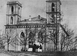 Tuutari is one of the oldest Finnish parishes in Ingria dating back to the beginning of the 17th century. The parish was probably named after the same-named manor (Swedish Duderhof). The first church was built during the Swedish rule in the Nowikkola (also Nowicola) village in the nowadays Krasnoye Selo, where the Russian tsarist palace was built in 1823. After the Great Northern War, the parish, together with the rest of the Ingria, was incorporated to the Russian Empire. The old church was destroyed in the war. 1736 a new wooden church was built at the place where formerly stood a small chapel at the Mölkönmäki hill. The new church depreciated fast and a new one was built in 1760. That church lasted until 1836 when a new stone church was built by the orders of Tsar Nikolai I. The church was nationalized in 1937 and closed in 1939 by the soviet rule. During the World War II the church was badly damaged and was left in ruins until the ruins were demolished in 1953.[2]