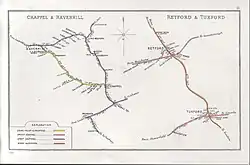 Despite its size, Tuxford had three railway stations but all are now closed. The Great Northern Railway opened the East Coast Main Line through Tuxford in 1852. The GNR's station at Tuxford was served by local trains between Newark-on-Trent and Retford. In 1897 The Lancashire, Derbyshire and East Coast Railway opened its line through Tuxford, linking Sheffield and Chesterfield with Lincoln. The LDECR called its station Tuxford Town, and the GNR renamed its station Tuxford North. In 1907 the Great Central Railway took over the LDECR and renamed Tuxford Town Tuxford Central. Dukeries Junction station was built where the two railways cross, and was a split-level affair with platforms on both lines, existing solely as an interchange point surrounded by open fields with no proper road access. Its name was taken from The Dukeries district of Nottinghamshire.