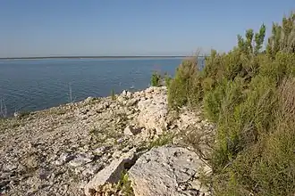 Twin Buttes Reservoir is an artificial lake located about 6 mi (9.7 km) southwest of the city of San Angelo, Texas, and immediately upstream from Lake Nasworthy. Construction on Twin Buttes Dam to form the reservoir was completed in 1963. The dam is an unusual one – it dams the Middle and South Concho Rivers separately; a stabilization channel runs between the two sides of the lake. Water levels fell significantly during the 2010–13 Southern United States drought and remained low into 2014.[3]
