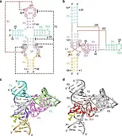 - ^ a b Zheng L, Mairhofer E, Teplova M, Zhang Y, Ma J, Patel DJ, Micura R, Ren A (October 2017). "Structure-based insights into self-cleavage by a four-way junctional twister-sister ribozyme". Nature Communications. 8 (1) 1180. Bibcode:2017NatCo...8.1180Z. doi:10.1038/s41467-017-01276-y. PMC 5660989. PMID 29081514.