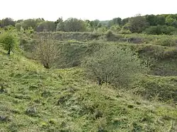 Twywell Gullet is a former ironstone quarry which has deep cuttings with steeply sloping banks. It has species-rich limestone grassland on the slopes and ponds and scrub in the bottoms. There are a number of uncommon ground nesting bees and wasps, and beetles include the nationally rare ruddy darter.[4] There is a large pond which has a large reedbed and many great crested newts.