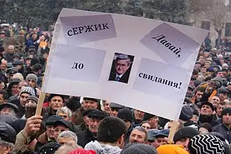 In August 2012, a group of Georgian opposition members used the phrase "Ty kto takoy? Davay, do svidaniya!" targeting president Mikheil Saakashvili in a performance of their own, which they sang in Georgian and released online.[5] The phrase addressed to the Hungarian government was used on placards posted around Yerevan, Armenia during a protest at the Consulate of Hungary on 1 September 2012, upon the extradition of officer Ramil Safarov, who had been convicted by a Hungarian court for murdering his Armenian counterpart in 2004.[6]