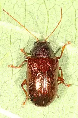 - ^ Clark, S.M. (2000). "An annotated list of the leaf beetles of West Virginia (Coleoptera: Orsodacnidae, Megalopodidae, Chrysomelidae exclusive of Bruchinae)". Occasional Publications of the West Virginia Department of Agriculture. 1: 1–93.