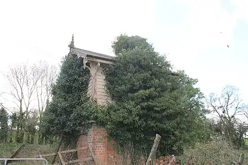 ![]() The derelict signal cabin, now overgrown with trees protruding from the windows | |||||