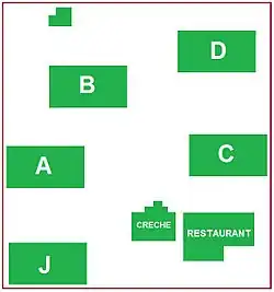 Built in the early 1990s and opened in 1995,[1] the site is set back from Whitley Road, a major route through Benton with an access road leading south from Whitley Road into the main site. Initially, the site consisted of four main office blocks (lettered A - D) with a crèche facility and a restaurant block (with a small gymnasium). Each of the four office blocks is identical in structure. With three floors in total, each floor has office space to the north and south of the building, leaving a three-storey open space, known as an 'atrium'. These atria spanned the whole building, with glass windows on the roof and semi-darkened glass to the sides of the office spaces on each floor. Inside the atria, seating areas can be found along with vending machines. Stairs and lifts to the floors could be found to the east and west of each building. In 2002, work started on a new large building to the south of the site, which would house the new 'London Pension Centre', which would be known as 'J Block'. This new building was slightly different from its A - D predecessors, although having an atrium itself, it differed from the other blocks by having open office space looking onto the atria rather than having glass walls. The building opened in 2004. In 1996, Tyneview Park was awarded the 'Quality in Urban Design' award by the Royal Town Planning Institute.[1]