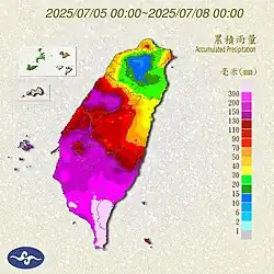 - ^ 整理, 數位內容部 (July 7, 2025). "丹娜絲從桃竹出海!20縣市「豪雨特報」…直撞中央山脈減弱為輕颱,何時解除陸警? - 今周刊". www.businesstoday.com.tw (in Chinese). Retrieved July 7, 2025.