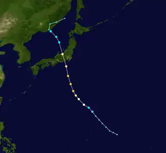 - ^ a b Kenneth R. Knapp; Michael C. Kruk; David H. Levinson; Howard J. Diamond; Charles J. Neumann (2010). 1959 Typhoon Georgia (1959222N15153). The International Best Track Archive for Climate Stewardship (IBTrACS): Unifying tropical cyclone best track data (Report). Bulletin of the American Meteorological Society. Retrieved October 31, 2020.