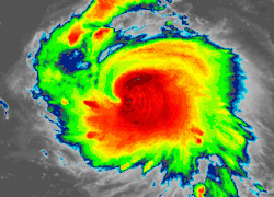 ![]() Hinnamnor at its peak intensity while approaching Okinawa on August 30. | |