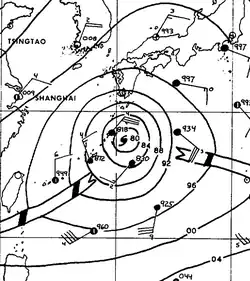 - ^ "95 m.p.h. Typhoon Races on Kysuhu". Oakland Tribune. Vol. 178, no. 236. Oakland, California. United Press International. August 23, 1964. p. 5. Retrieved June 26, 2020 – via Newspapers.com.