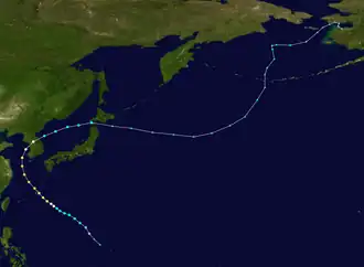 Typhoon Kompasu, known in the Philippines as Typhoon Glenda, was a strong tropical cyclone that moved along Okinawa, Japan and west coast of the Korean Peninsula before striking the Seoul Metropolitan Area in early-September 2010. It was the first significant system to directly strike the Seoul Metropolitan since Typhoon Prapiroon in 2000[1] and the strongest typhoon to directly impact the area since Tropical Storm Janis in 1995.[2][3]