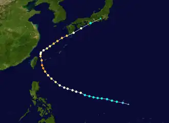 - ^ "平成28年 台風第16号に関する情報 第89号" (in Japanese). Japan Meteorological Agency. September 19, 2016. Archived from the original on September 19, 2016. Retrieved September 19, 2016.