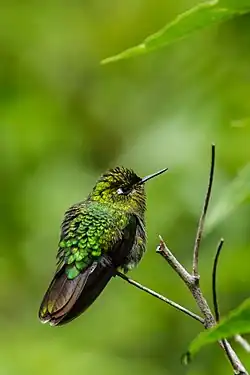 The Tyrian metaltail (Metallura tyrianthina) is a species of hummingbird in the subfamily Lesbiinae, the brilliants and coquettes. It is found in Bolivia, Colombia, Ecuador, Peru, and Venezuela.[3][4]