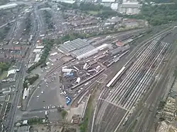 An overhead view of the depot, the museum & the carriage sidings.