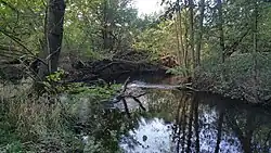 The river flows from a small lake south of Trzcińsko-Zdrój, through eight ribbon lakes (the largest of which is Lake Banská), and the Eastern Oder passes south of Gryfino, where its waters are used to cool the Dolna Odra Power Plant. Larger towns nearby include Trzcińsko-Zdroj, Strzeszów, Swobnica, Lubanowo, and Tywica.