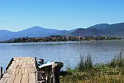As municipal seat, the town of Tzintzuntzan is the governing authority for 35 other named communities, including Ihuatzio, which has more population. Most of the municipality's population of 12,259 live outside of the town limits (73%).[1] In 2005, the census counted 1,743 people who spoke an indigenous language, mostly Purépecha and Ixcateco. The municipality has a territory of 165.15 km2 and borders the municipalities of Quiroga, Morelia, Lagunillas, Huiramba, Pátzcuaro and Erongarícuaro.[2][3]