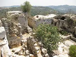 The Palestinian village of Suba, built on the ruins of Belmont Castle, was the scene of fierce fighting during the 1947–1949 Palestine war due to its strategic location overlooking the road to Jerusalem. In late 1947 and early 1948, irregular forces and militiamen stationed in Suba attacked Jewish traffic on the main highway from Tel Aviv to Jerusalem.[9] The village was conquered by the Palmach during the night of July 12–13 as part of Operation Danny. Most of the inhabitants fled before the fighting, with the brigades involved in Operation Danny ordered to prevent their return.[10] Most moved to Kalandia or Amman, Jordan, although some moved only 1 km away to the nearby village of Ein Rafa – where they and their descendants live to this day as Israeli citizens.[11]