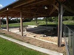 The exposed remains, which have been relatively flattened, have been enhanced for the benefit of visitors and are now protected by a shelter. The enhancement work commenced in 2008 with the construction of the covered structure and a walkway allowing visitors to view the remains optimally. The walkway, measuring 24 meters in length, was installed on January 19, 2011.[1] This enhancement has stimulated renewed interest in the archaeological site and the museum, which opened in the early 2000s.[D 1]