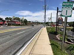 Construction on the Bel Air Bypass got underway in 1963.[14][15] The bypass was originally planned to pass around Hickory as well, but the northern extension was postponed by 1966.[15][16] When the bypass opened in 1965, taking US 1 out of downtown Bel Air, Belair Road from Benson to downtown Bel Air was temporarily designated as an extension of MD 147.[17] By 1966, US 1 Bus. was assigned from Benson north to the end of the bypass south of Hickory.[16] The extension of the Bel Air Bypass around Hickory was constructed in 2000. US 1 was subsequently placed on the new bypass, and US 1 Bus. was extended to its current length.[18]