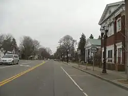 Outside of the Oatka Valley, US 20A heads east through the remainder of the town of Warsaw prior to entering the town of Perry. The route serves Perry–Warsaw Airport on its way to Perry Center, a small hamlet situated directly north of the village of Perry, where US 20A intersects NY 246. The portion of US 20A in Perry is otherwise uneventful, and the route quietly passes into the Livingston County town of Leicester 2.5 miles (4.0 km) later. After another one mile (1.6 km) of rural surroundings, US 20A meets NY 39 at a junction approximately 1.5 miles (2.4 km) southwest of the village of Leicester. The two routes converge, following Leicester Road northeast to the village, where the highway's name shifts to Main Street upon entering the village limits.