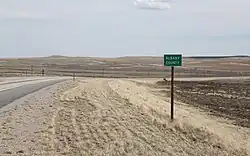 US 30 rejoins I-80 east of Laramie, where the two routes pass by numerous mountain ranges. They also pass an exit for numerous campgrounds, as well as an Abraham Lincoln Memorial Monument. The monument was chosen as "Roadside America's Sight of the Week".[8] They pass through Buford, along with several climbing areas and state parks dotting the sides of the route. There are several scenic sites to see along the road while driving in this part of the area.[9] The road then enters Laramie County, the final county in the state that both I-80 and US 30 pass through. West of Cheyenne, the state capital, the routes pass by a large wind farm and follow a gap of bumpy hills in the area.[10] The first major interchange approaching Cheyenne is with WYO 222. Both I-80 and US 30 enter Cheyenne, but not together. At the interchange with WYO 225, one more I-80 Bus. breaks off, and so does US 30 along with the business route.