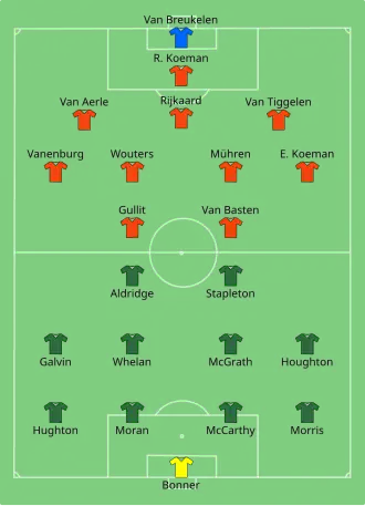 - ^ "UEFA EURO 1988 - History - Republic of Ireland-Netherlands". UEFA. Union of European Football Associations. Archived from the original on 13 December 2007. Retrieved 27 December 2017.
