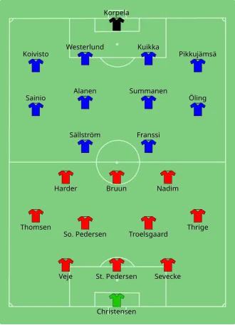 - ^ a b "Tactical Line-ups – Denmark v Finland" (PDF). UEFA. Union of European Football Associations. 12 July 2022. Archived from the original (PDF) on July 12, 2022. Retrieved 12 July 2022.