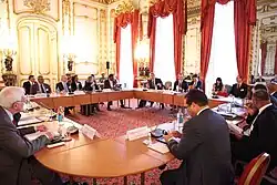 The UK–Overseas Territories Joint Ministerial Council is a joint committee that brings together ministers from the UK Government and the leaders of the governments of the British Overseas Territories. The council was established in 2012 and superseded the earlier Overseas Territories Consultative Councils.[1] It meets once a year at Lancaster House or FCDO King Charles Street, in London.