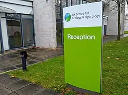 The UK Centre for Ecology & Hydrology (UKCEH, also known by the former name CEH)[2] is a centre for excellence in environmental science across water, land and air. The organisation has a long history of investigating, monitoring and modelling environmental change. It operates from four sites in the UK and one in Ghana. Research topics include: air pollution, biodiversity, chemical risks in the environment, extreme weather events, droughts, floods, greenhouse gas emissions, soil health, sustainable agriculture, sustainable ecosystems, water quality, and water resources management.