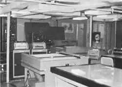 The ship, primarily assigned to the Pacific,[note 3] was equipped with an early shipboard data acquisition and processing system designated the Hydrographic Data Acquisition System (HYDAS) based on the PDP-9 computer. The identical system was installed aboard Harkness. Similar systems were installed on Sgt. George D Keathley (T-AGS-35) and Kellar (T-AGS-25).[8][note 4] One computer was dedicated to real time collection of survey data and another to processing the data for making nautical charts or being a backup for the real time data collection in event of failure of that computer. A real time navigation plot was generated on a flatbed plotter. The processing computer processed data collected by the ship and the sounding launches which had an associated data collection system designated HYSURCH for hydrographic survey and charting system. The launches themselves were 36 foot fiber glass, diesel powered, "sports sedans" capable of 30 kn (35 mph; 56 km/h) smooth water speed and modified for survey operation.[10]