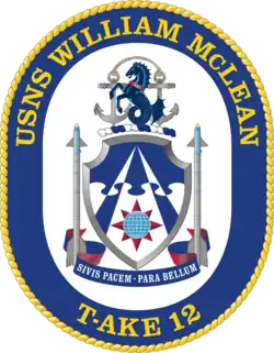This article incorporates public domain material from USNS WILLIAM MCLEAN (T-AKE 12). United States Army Institute of Heraldry.