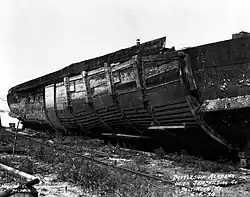 The hulk was pulled on shore on Union Shipbuilding's marine railway to begin the scrapping process.[20]